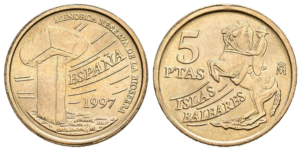 JUAN CARLOS I (1975-2014). 5 Pesetas. (CuNi. 2,99g/17mm). 1997. Madrid. (Cal-2019-56 var). Quinta pata delantera. EBC.