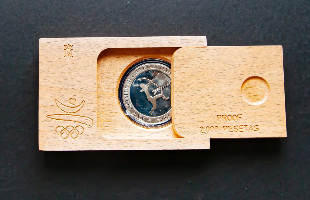 JUAN CARLOS I (1975-2014). 2000 Pesetas. (Ar. 27,00g/40mm). 1990. FNMT. Barcelona'92 Series. Tiro con arco. PROOF. Incluye cápsula y estuche de madera.