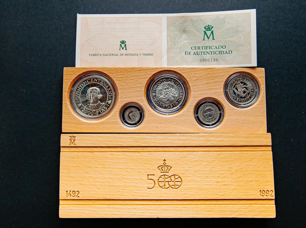 JUAN CARLOS I (1975-2014). Estuche completo compuesto por 5 monedas en plata de valores comprendidos entre 2000 y 100 Pesetas. Quinto Centenario. 1989. Serie I. FNMT. FDC. Incluye estuche original y certificado de autenticidad.