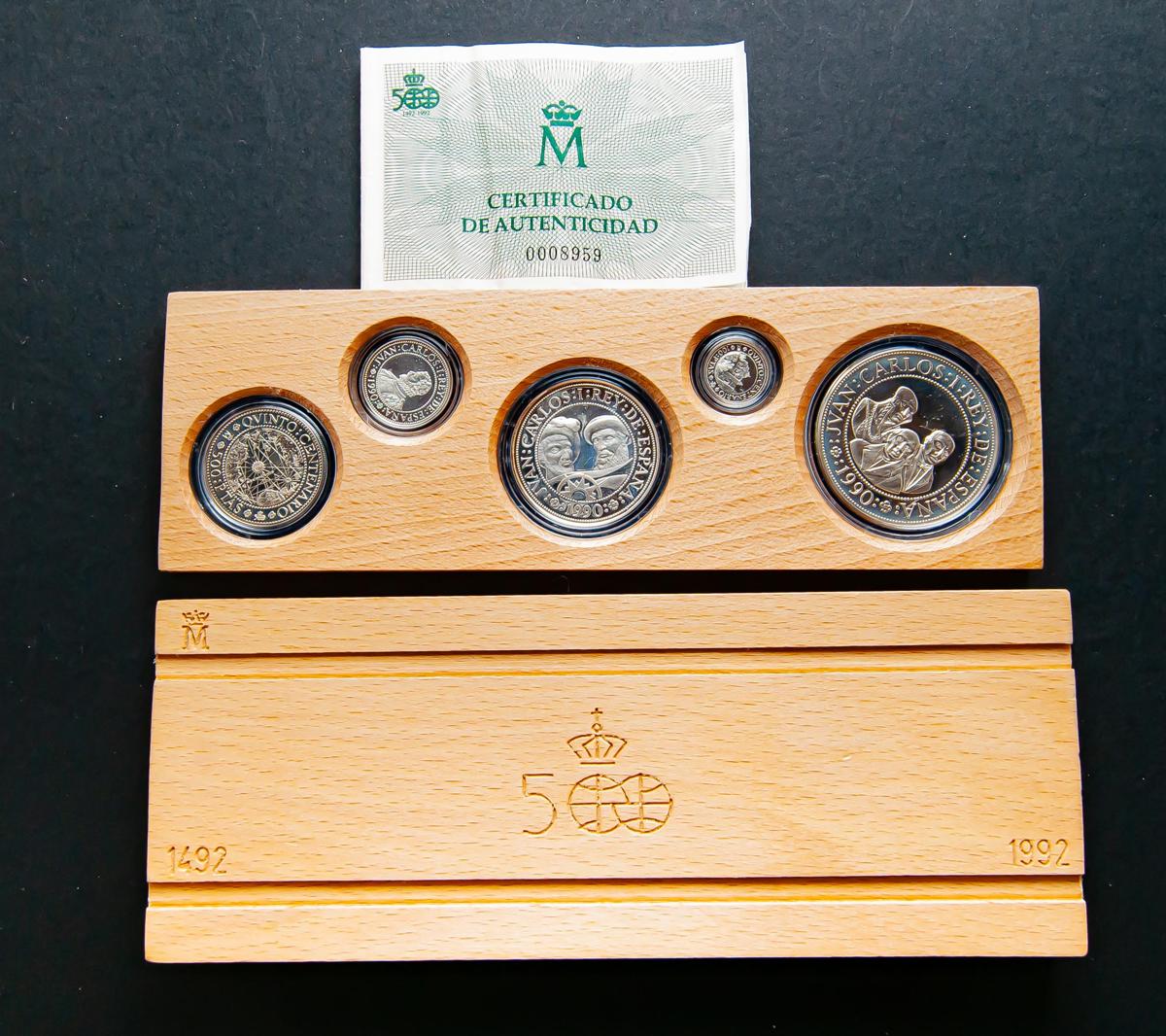 JUAN CARLOS I (1795-2014). Estuche completo compuesto por 5 monedas en plata de valores comprendidos entre 100 y 2000 Pesetas. Quinto Centenario. 1990. Serie II. FNMT. FDC. Incluye estuche original y certificado de autenticidad.
