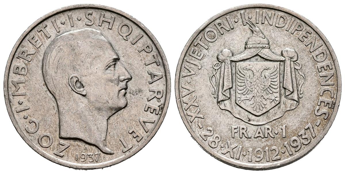 ALBANIA. 1 Frang. (Ar. 5,00g/23mm). 1937. Zog I. (Km#16). MBC+.