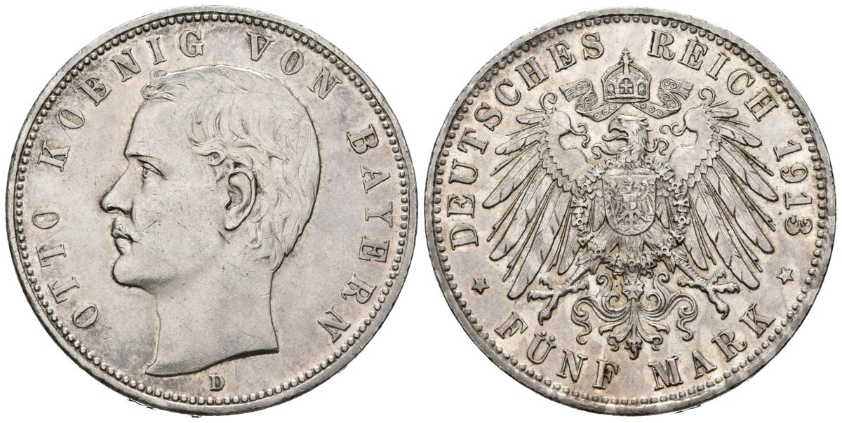 ALEMANIA (Imperio Alemán). 5 Mark. (Ar. 27,82g/38mm). 1913. Otón I. Munich D. (km#915). MBC+/EBC-.