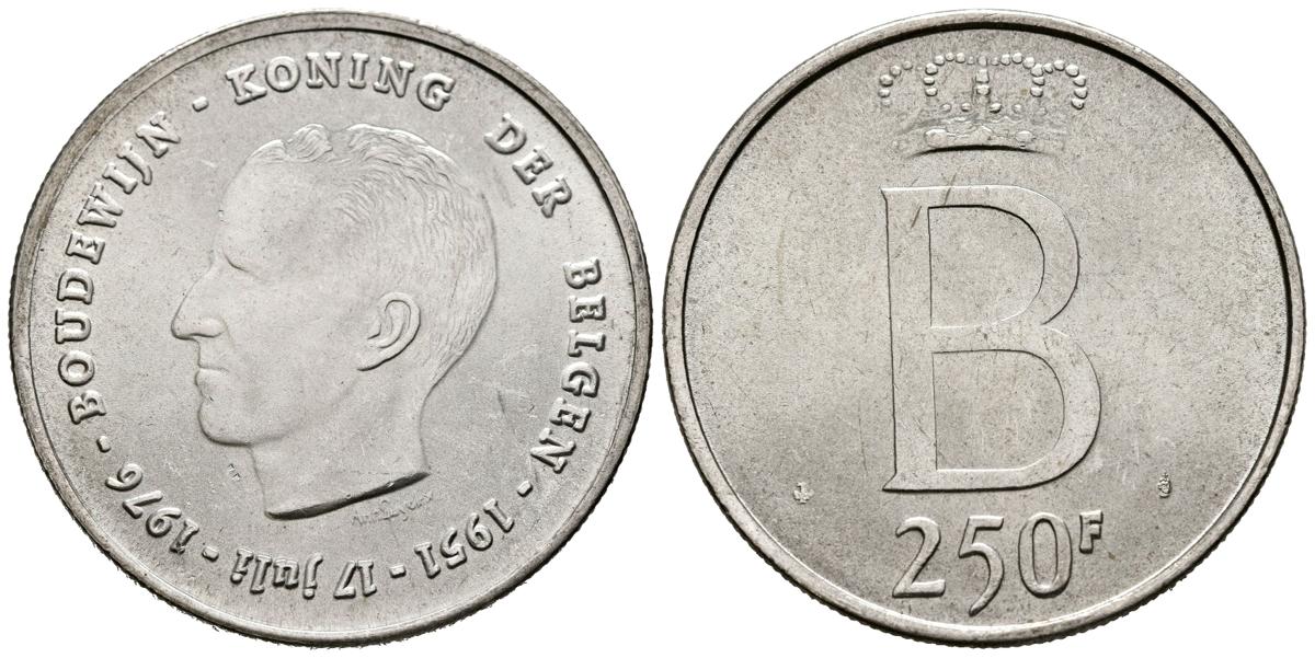 BELGICA. 250 Francos. (Ar. 24,65g/37mm). 1976. (Km#157). EBC.