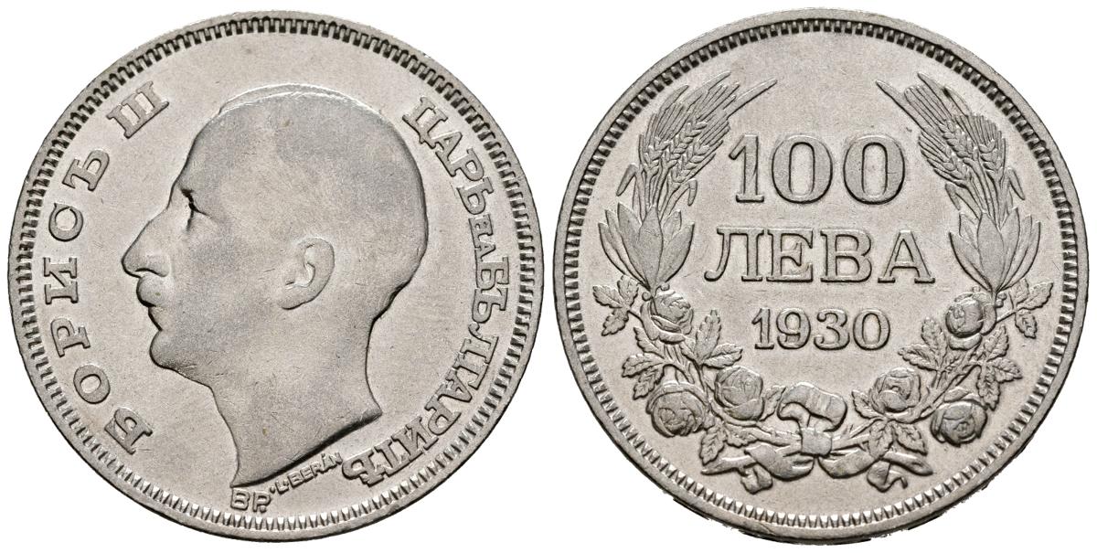 BULGARIA. 100 Leva. (Ar. 19,86g/34mm). 1930. Boris III. (Km#43). MBC+.