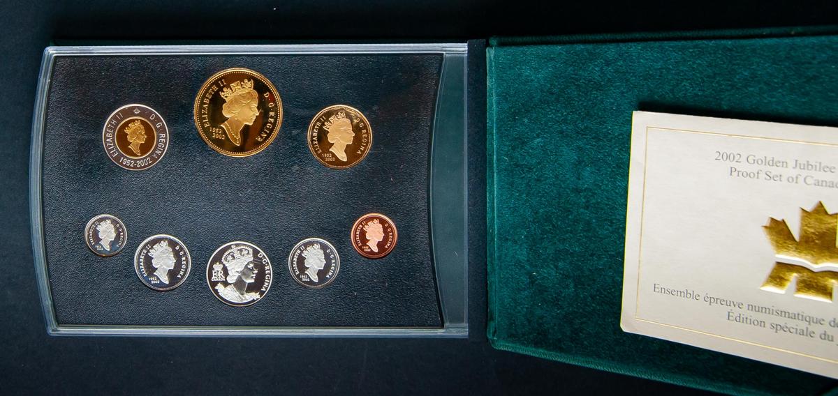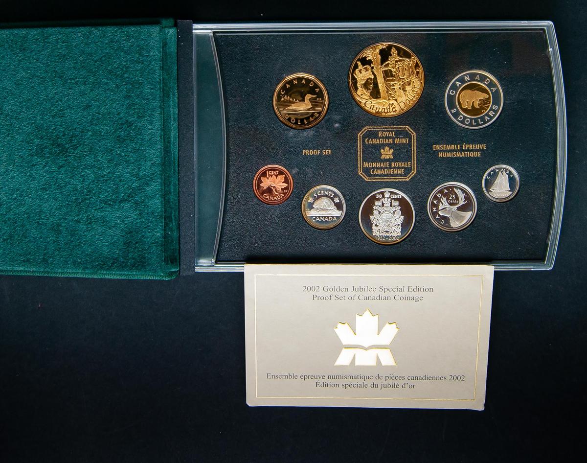 CANADÁ. Set completo del Golden Jubilee de la Reina Isabel II. 1952-2002. 8 piezas en total, en su mayoría de plata y con valores comprendidos entre 1 Cent y 2 Dollars. Incluye estuche original y certificado de autenticidad. PROOF Set Edition.