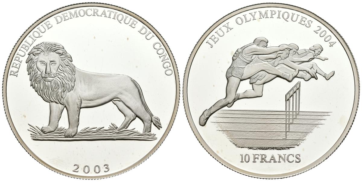 CONGO. 10 Francos (Ar. 25,59g/40mm). 2003. Juegos Olímpicos de Atenas 2004. (Km-UC#222). PROOF. Rara.