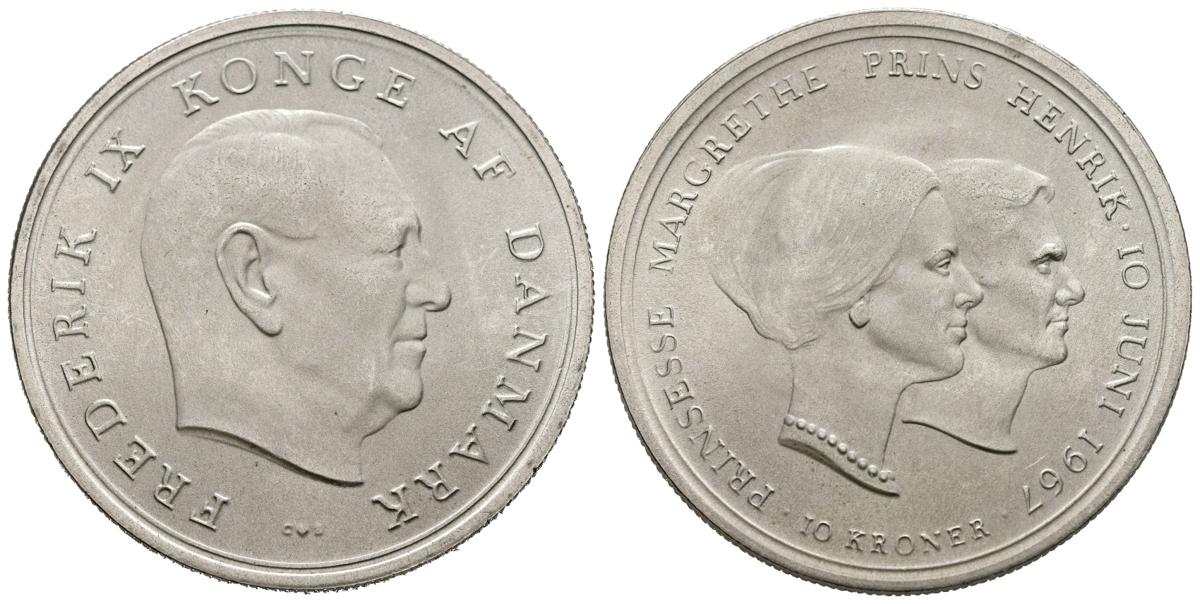 DINAMARCA. 10 Coronas. (Ar. 20,36g/36mm). 1967. Copenhague Boda de la Princesa Margarita. (Km#856). EBC+.