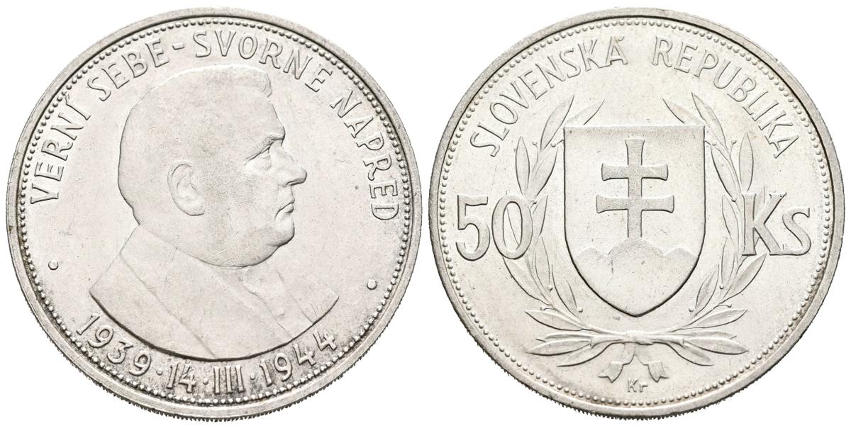 ESLOVAQUIA. 50 Coronas. (Ar. 16,43g/34mm). 1944. 5º Aniversario de la República Eslovaca. (Km#10). EBC.