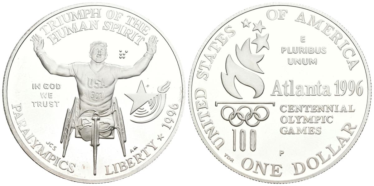ESTADOS UNIDOS. 1 Dollar. (Ar. 26,40g/38mm). 1996. Philadelphia P. X Juegos Paralímpicos. Atlanta 1996. (Km#268). PROOF.