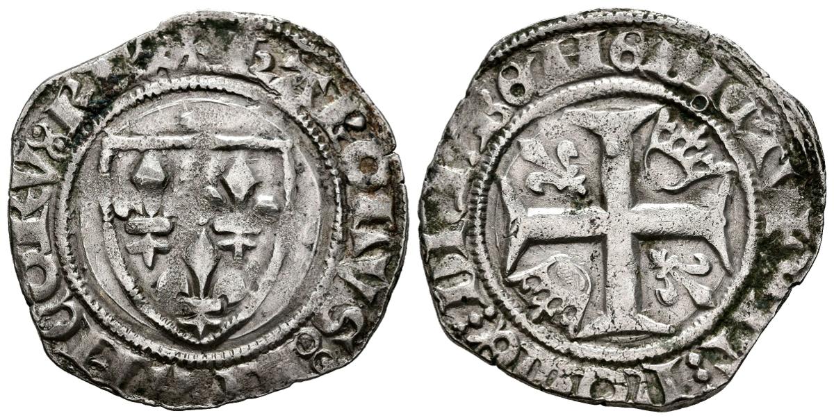 FRANCIA, Carlos VI. Blanc Guénar. (Ar. 2,86g/26mm). 1380-1422. (Dupplessy 377). MBC.