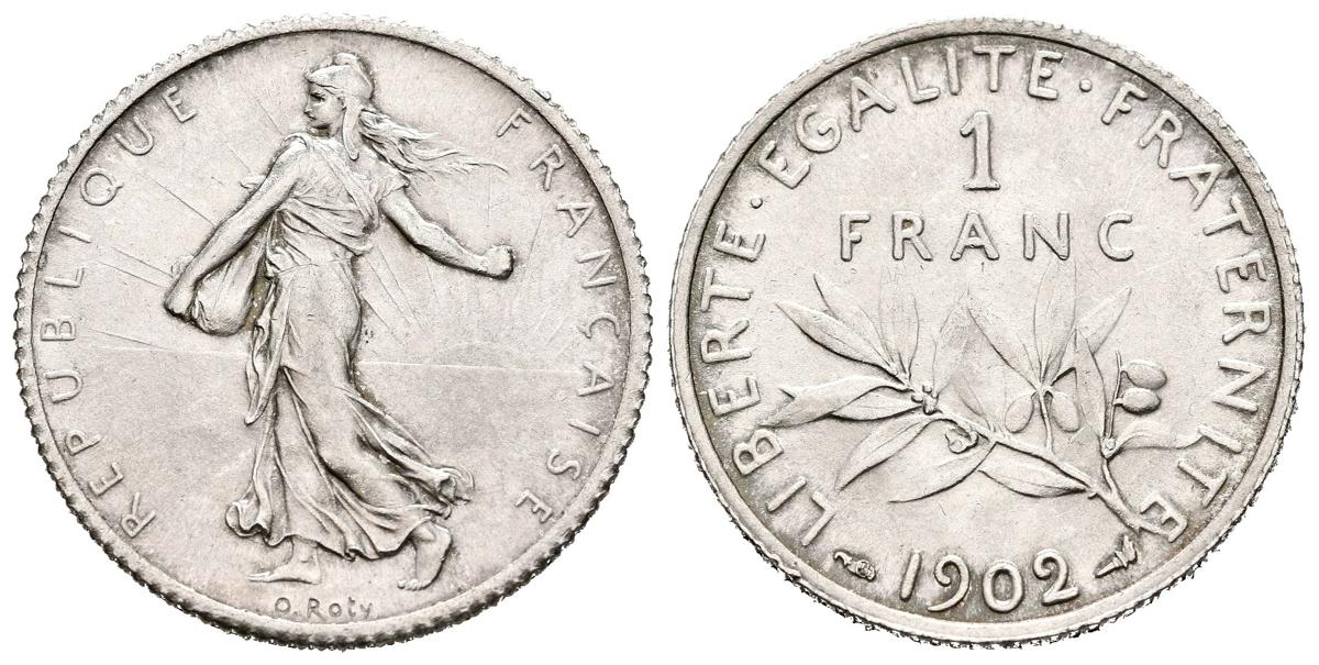 FRANCIA. 1 Franc. (Ar. 5,02g/23mm). 1902. París. (Km#844). SC-. Leve rayita en reverso.