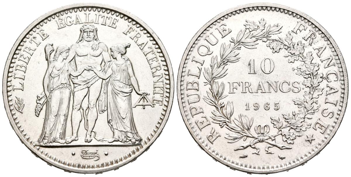 FRANCIA. 10 Francs. (Ar. 24,98g/37mm). 1965. (Km#932). EBC-. Ligeras marquitas.