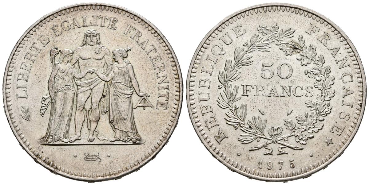 FRANCIA. 50 Francs. (Ar. 30,01g/41mm). 1975. (Km#941). EBC.