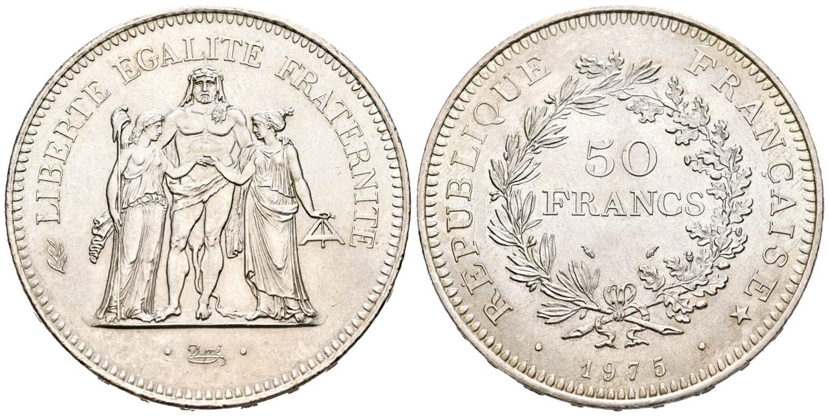 FRANCIA. 50 Francs. (Ar. 29,98g/41mm). 1975. (Km#941). EBC+.