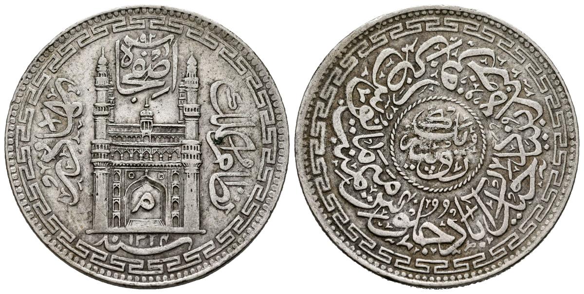 INDIA. 1 Rupia. (Ar. 11,18g/30mm). 1906. Hyderabad. (Km#40.1). MBC+.