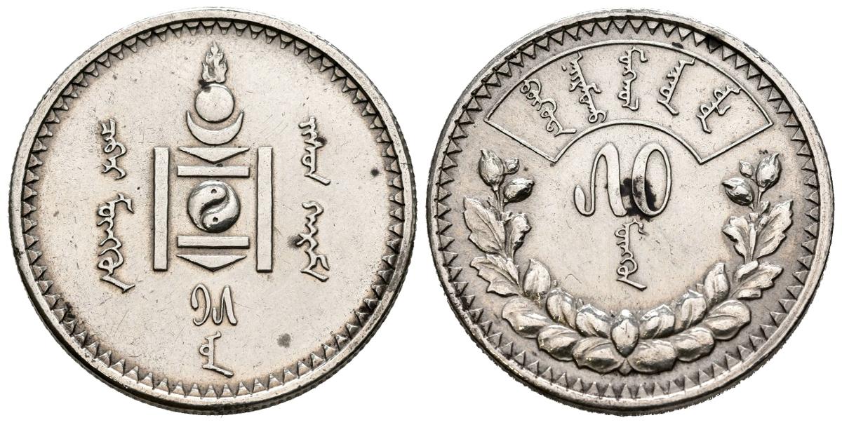 MONGOLIA. 50 Mongo. (Ar. 9,91g/27mm). 1927. Acuñada en Leningrado. (Km#7). EBC-. Rayitas.