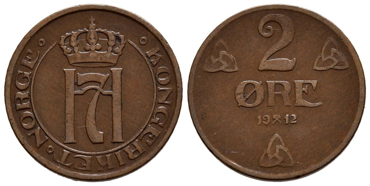 NORUEGA. 2 Ore. (Ae. 3,99g/21mm). 1912. Kongsberg. Haakon VII. (Km#371). MBC-. Rara.