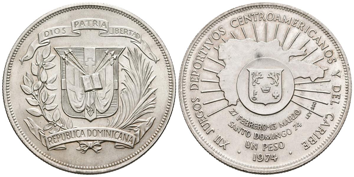 REPUBLICA DOMINICANA. 1 Peso. (Ar. 26,98g/38mm). 1974. XII Juegos de América Central y Caribe. (Km#35). EBC.