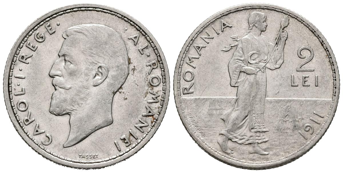 RUMANIA. 2 Lei. (Ar. 9,98g/27mm). 1911. Carlos I. Reino de Rumanía. (Km#43). MBC+.