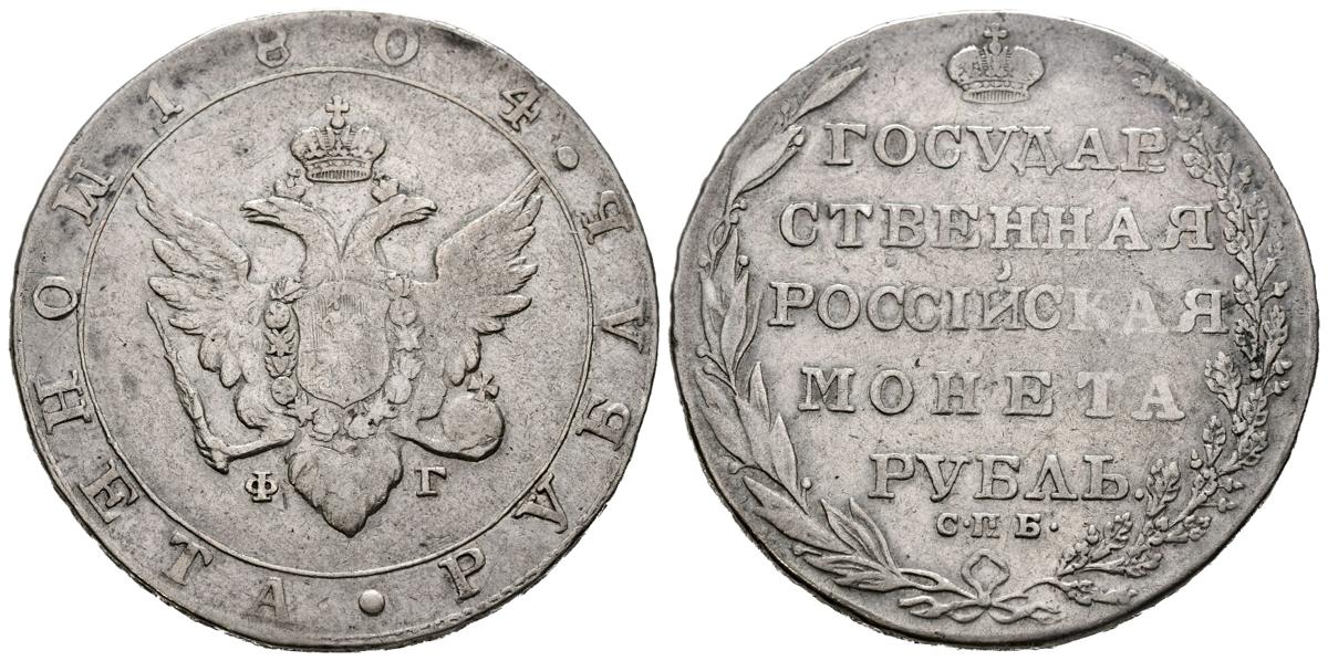 RUSIA, Alejandro I. 1 Rublo. (Ar. 20,76g/37mm). 1804. San Petersburgo. (Km#125). MBC. Escaso ejemplar.