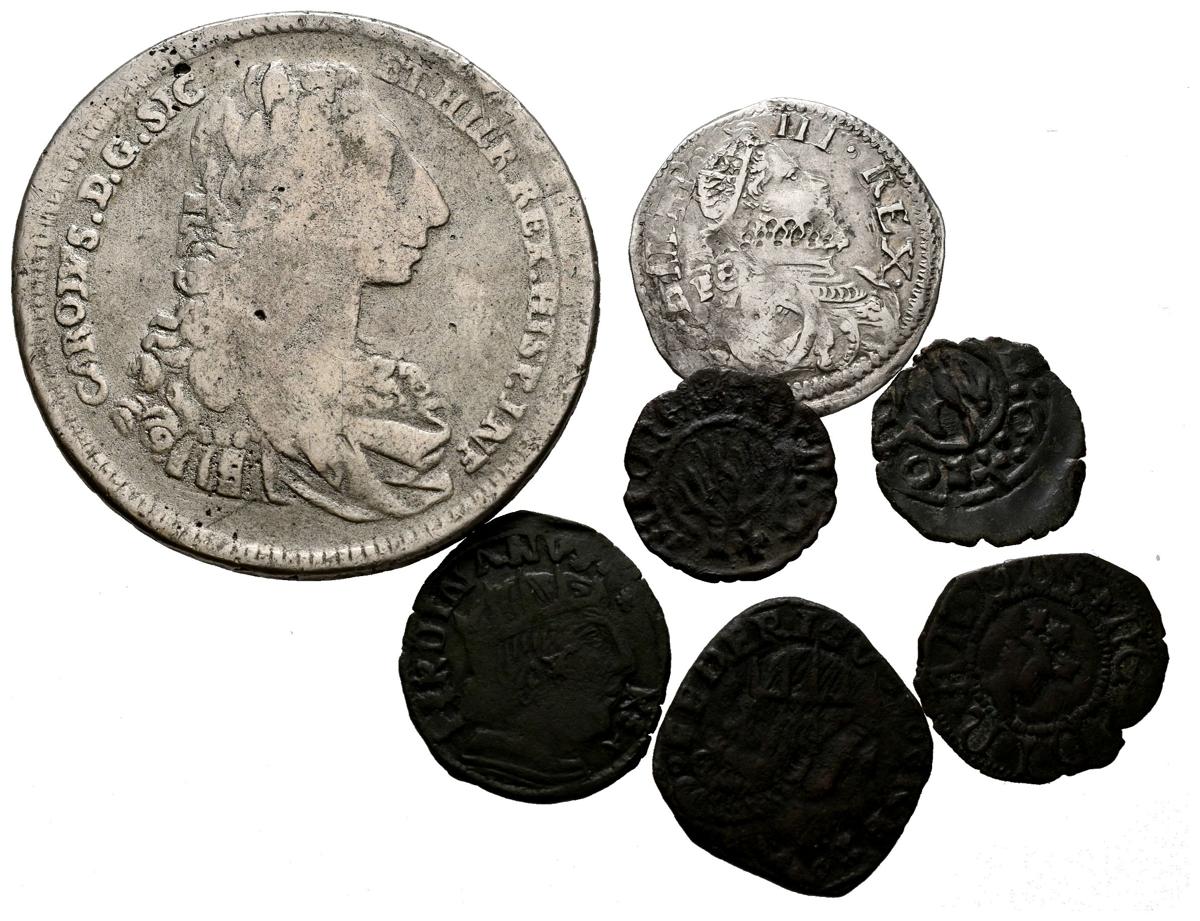 EPOCA MEDIEVAL y MONARQUIA ESPAÑOLA. Interesante conjunto de 7 monedas acuñadas diferentes cecas italianas pertenecientes al Imperio Español. Diferentes estados de conservación. A EXAMINAR.