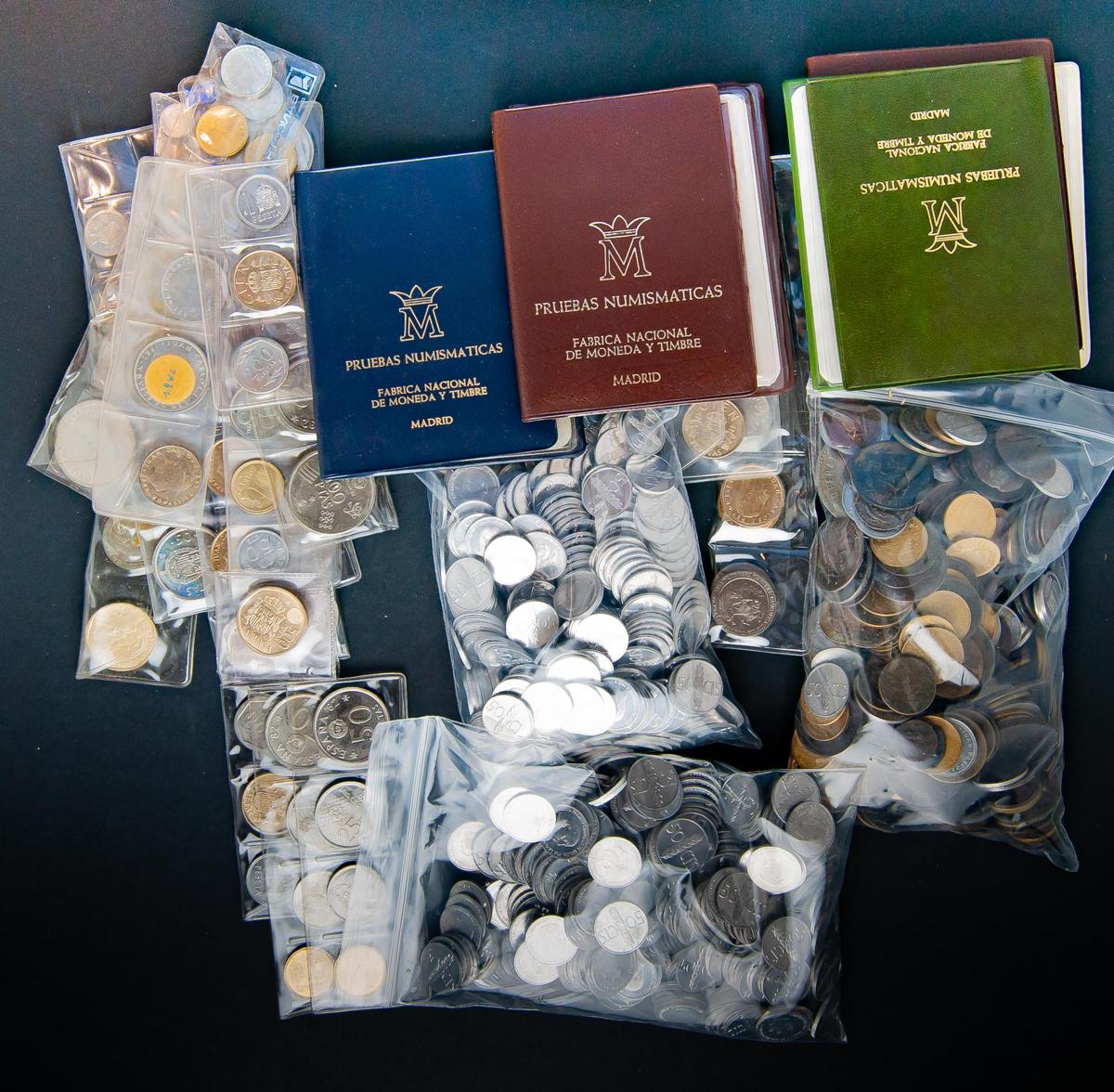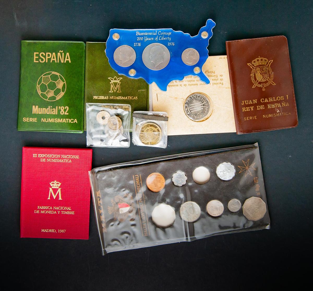 ESPAÑA. Conjunto formado por centenares de monedas españolas de diferentes periodos (fundamentalmente del Estado Español y Juan Carlos I). Destacan en el conjunto decenas de piezas en SC de 50 Céntimos de 1966 así como un buen número de tiras y carteras. El conjunto se completa con dos sets de monedas extranjeras (Estados Unidos y Malta). Diferentes estados de conservación. A EXAMINAR.