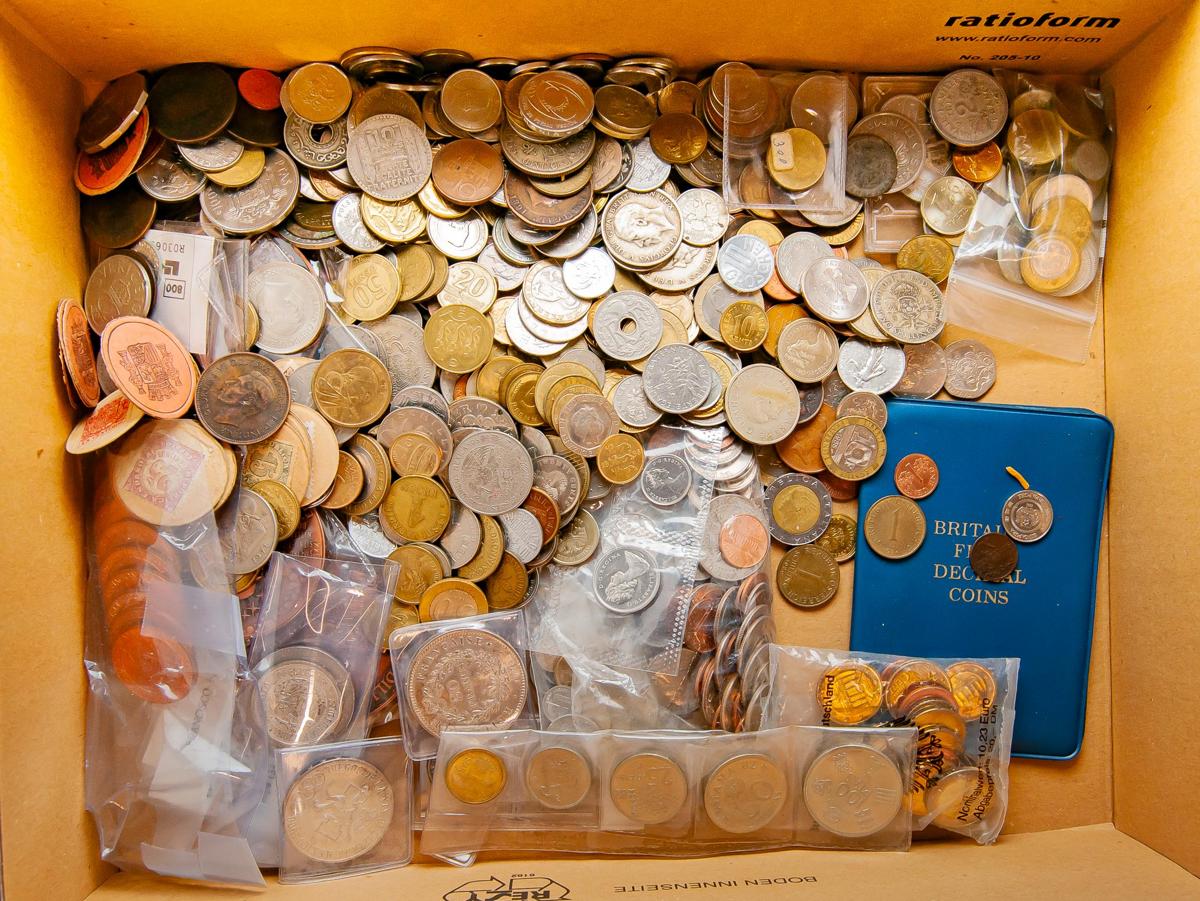 Interesante conjunto formado por cientos de monedas y medallas tanto españolas como mundiales acuñadas, en su gran mayoría, en el siglo XX. El conjunto incluye algunas piezas en plata, tiras y sellos monedas. Diferentes estados de conservación. A EXAMINAR.