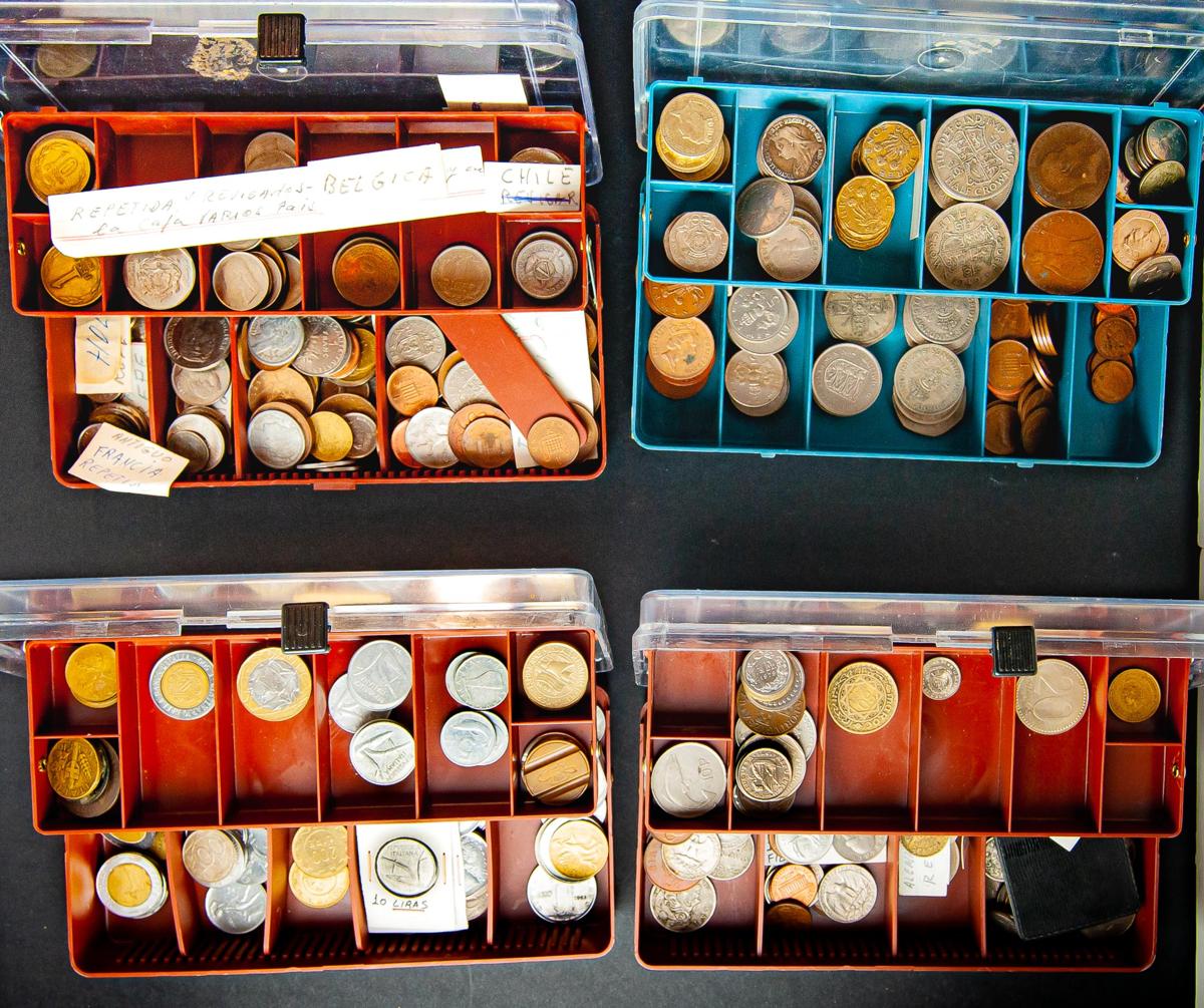 Extenso e interesante lote compuesto por miles de monedas mundiales y españolas (cobres del Centenario, Estado Español y Reinado de Juan Carlos I) principalmente acuñadas en el siglo XX. El lote incluye piezas en una gran cantidad de materiales, diferentes módulos, fechas, cartuchos (algunos incompletos), tiras y bolsas. Destacan un gran número de piezas de 1 Peseta. Diferentes estados de conservación. A EXAMINAR.