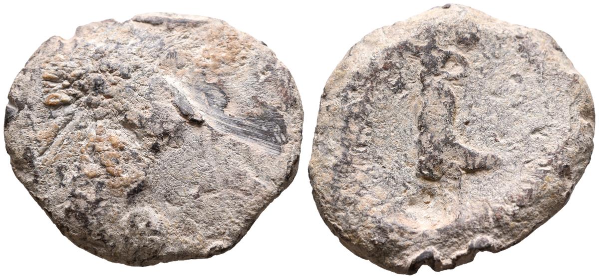 SERIE DE ATENEA Y VICTORIA. Plomo monetiforme. (Pb. 45,71g/38mm). (CCP 1). Rev: Victoria avanzando a izquierda. MBC-. Raro ejemplar.