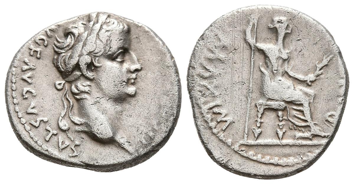 TIBERIO. Denario. (Ar. 3,66g/18mm). 36-37 d.C. Lugdunum. (RIC 30). Anv: Cabeza de Tiberio a derecha, alrededor leyenda: TI CAESAR DIVI AVG AVGVSTVS. Rev: Livia sentada a derecha con rama y cetro, alrededor leyenda: MAXIM PONTIF. MBC+/MBC.