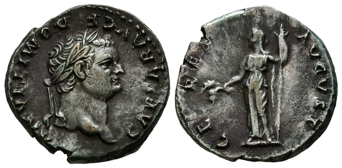 DOMICIANO. Denario. (Ae. 3,46g/18mm). 77-78 d.C. Roma. (RIC 976). Anv: Cabeza laureada de Domiciano a derecha, alrededor leyenda: CAESAR AVG F DOMITIANVS. Rev: Ceres estante a izquierda portando rama y cetro, alrededor leyenda: CERES AVGVST. EBC-.