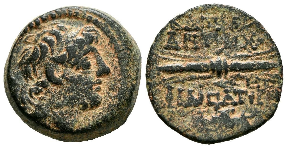 REINO SELEUCIDA, Antiochos IX. Ae18. (Ae. 5,95g/18mm). 114-95 a.C. Antioquía. (HGC 9, 1248). Anv: Cabeza laureada de Antiochos IX a derecha. Rev: Rayo alado, alrededor leyenda griega. MBC.
