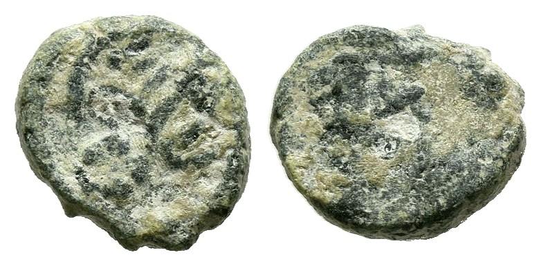 VISIGODOS. Nummus. (Ae. 0,55g/8mm). Siglo IV a.C. Anv: Victoria avanzando a izquierda. Rev: ¿Monograma?. MBC.
