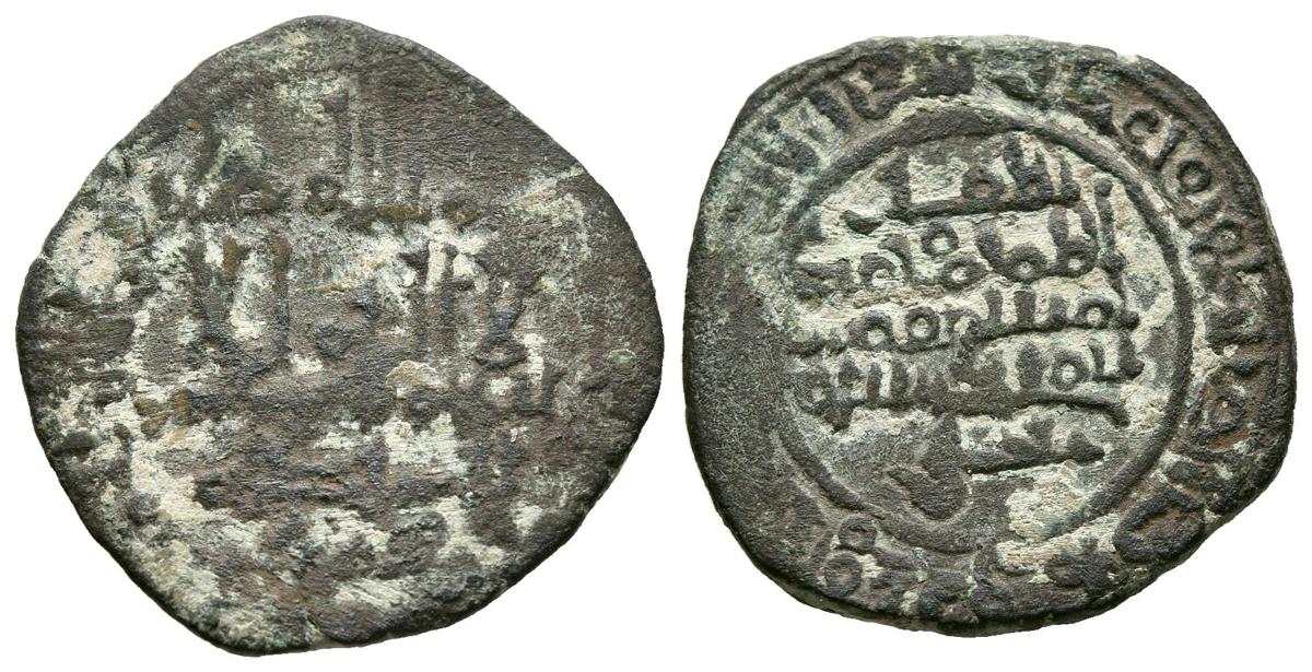 TAIFAS DEL CALIFATO, Hammudíes de Málaga (Muhammad Ibn Idris Al-Mahdi). Dirham. (Ae. 2,64g/19mm). Fecha y ceca no visibles. (Tipo Vives 864; Prieto 104). Citando a Muhammad en la IA y a Yahya en la IIA. MBC.