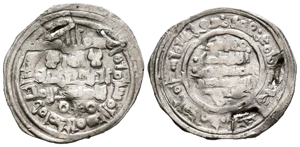 CALIFATO HAMMUDI, Ali ibn Hammud. Dirham. (Ar. 2,82g/32mm). 408H. Madinat Sabta (Ceuta). (Vives 731; Prieto 62b). MBC-. Dos perforaciones de época.