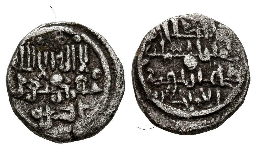 ALMORAVIDES, Ali ibn Yusuf y el emir Sir. Quirate. (Ar. 0,98g/10mm). (Vives no cita; Hazard no cita; Benito Ce13). Leyenda en reverso: "ayadhu Allah". MBC.