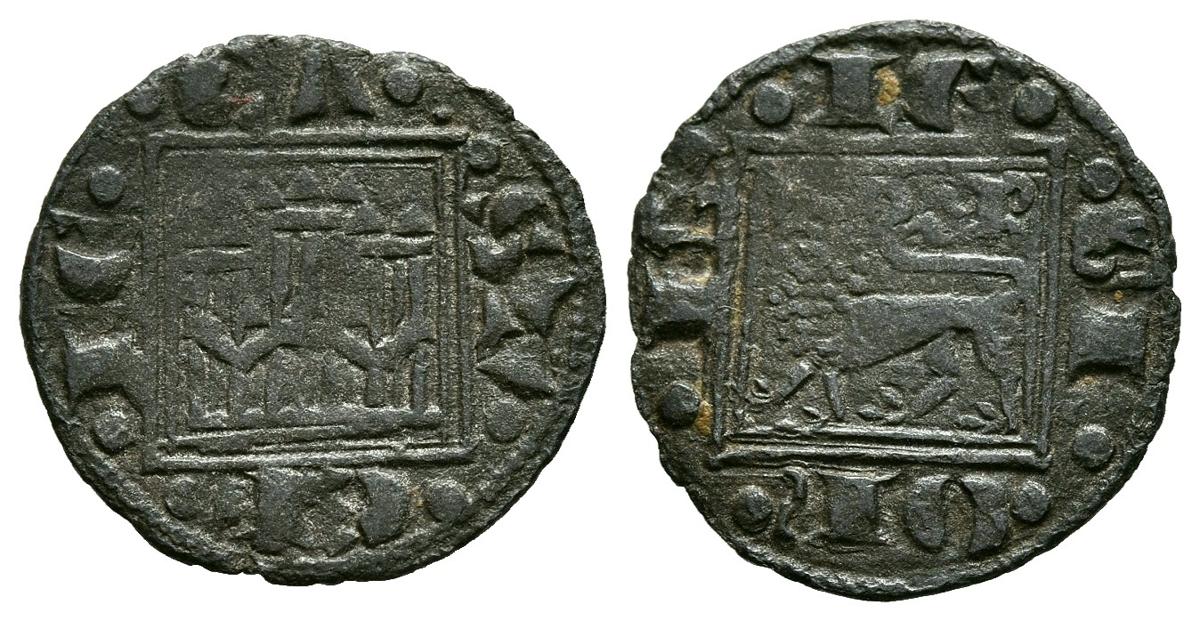 ALFONSO X (1252-1284). Obolo. (Ae. 0,54g/14mm). Sin marca de ceca. (FAB-280). Anv: Castillo dentro de gráfila cuadrada, alrededor leyenda: CASTELLE. Rev: León a izquierda dentro de gráfila cuadrada, alrededor leyenda: LEGIONIS. MBC.