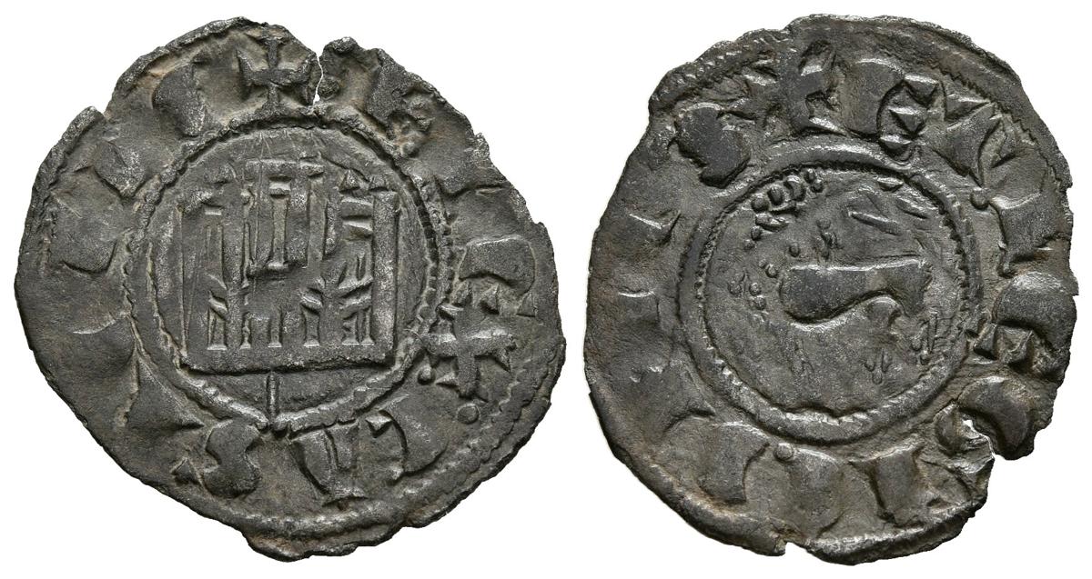 INFANTE DON ENRIQUE (1259). Pepión. (Ve. 0,63g/20mm). Ceca indeterminada. (FAB no cita). Anv: Castillo, debajo marca de ceca indeterminada, alrededor leyenda: E REX CASTELLE. Rev: León a izquierda, alrededor leyenda: ET LEGIONES. MBC. Escaso.