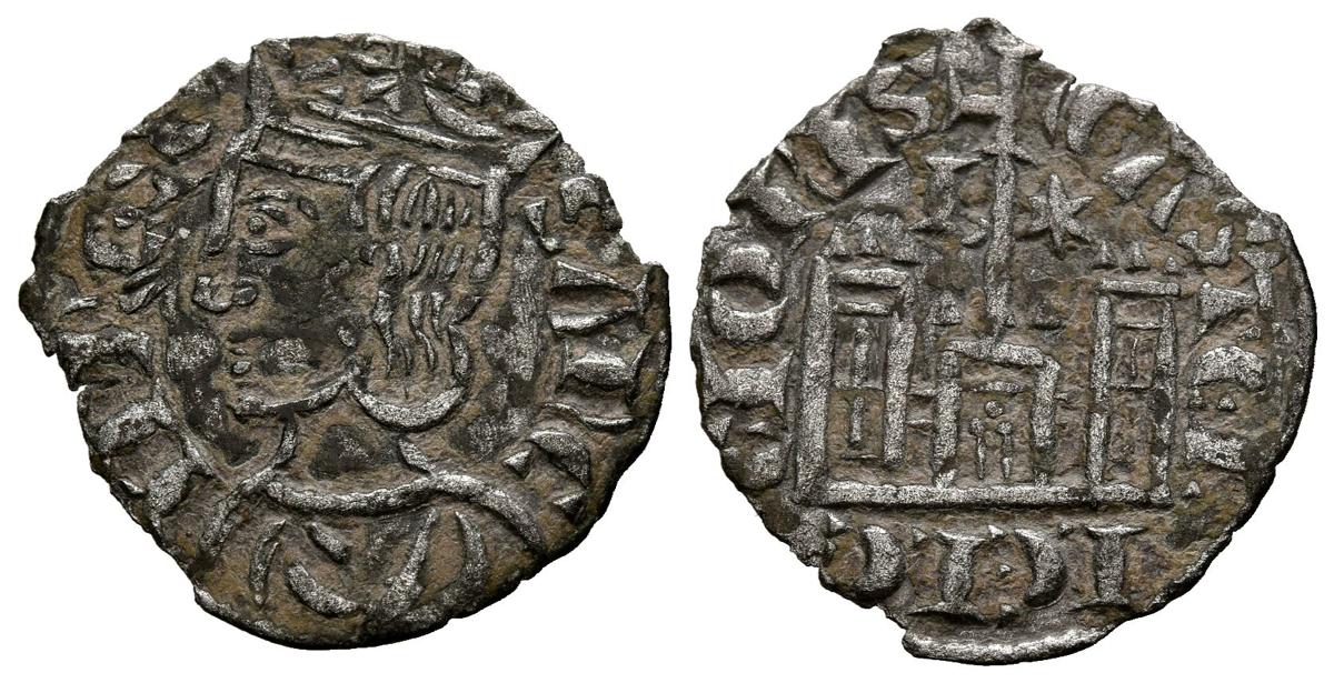 SANCHO IV (1284-1295). Cornado. (Ve. 0,61g/18mm). Burgos. (FAB-296.3). Anv: Busto coronado a izquierda, alrededor leyenda: SANCII REX. Rev: Castillo con cruz sobre vástago central y marca de ceca B y estrella de seis puntas, alrededor leyenda: CASTELLE E LEGIONIS. MBC.