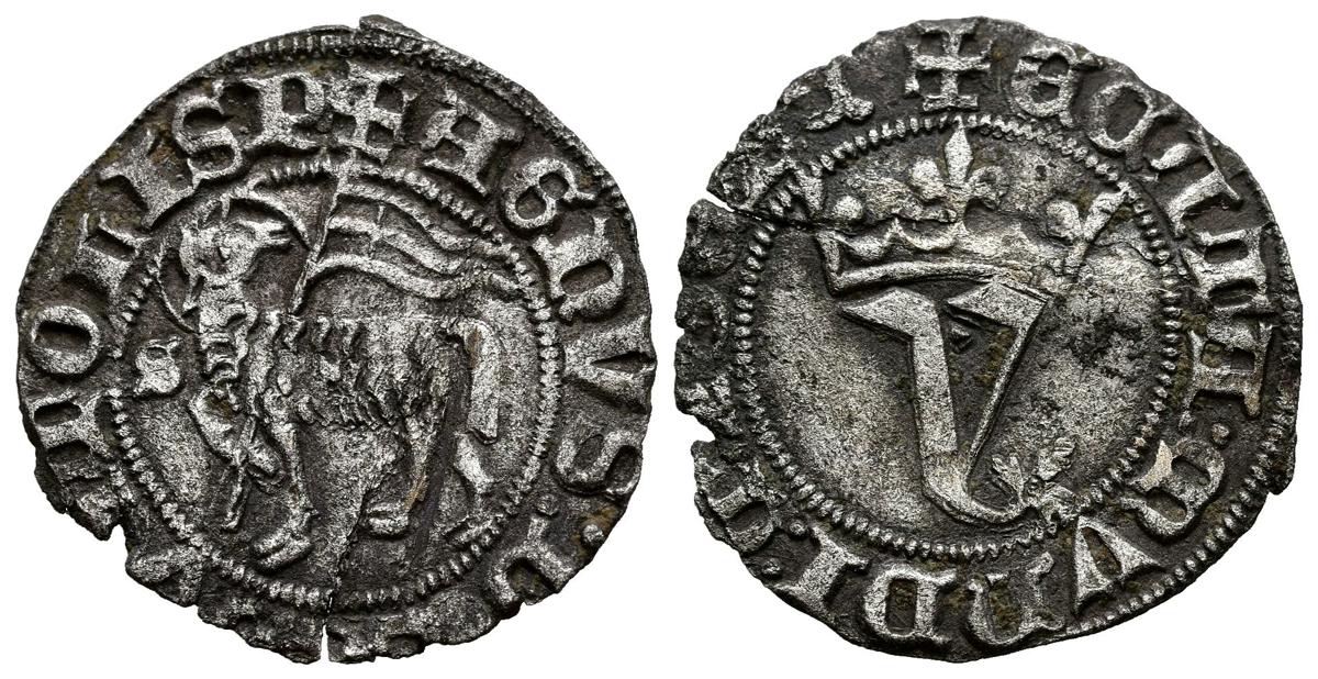 JUAN I (1379-1390). Blanca del Agnus Dei (Ve. 1,45g/21mm). Sevilla. (FAB-555.2). Anv: Cordero con estandarte a izquierda mirando a derecha, delante S, alrededor leyenda: AGNVS DEI QVI TOLIS PE. Rev: Y coronada en gráfila circular, alrededor leyenda: E CATA MVNDI MISERE N. MBC.