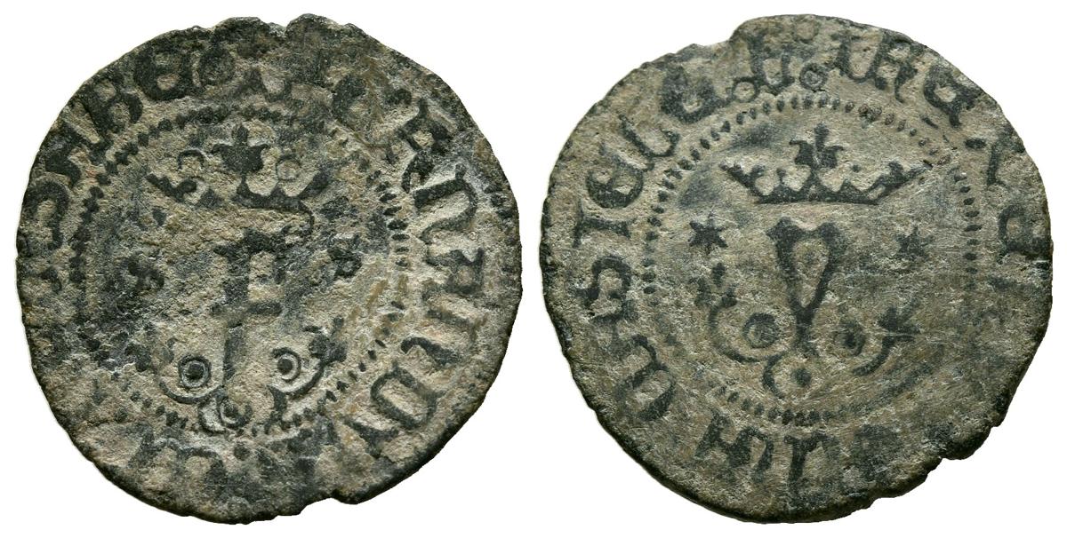 REYES CATOLICOS (1474-1504). Blanca. (Ae. 1,27g/18mm). S/D. Sevilla. (Cal-2019-46). Estrellas en reverso. MBC-.