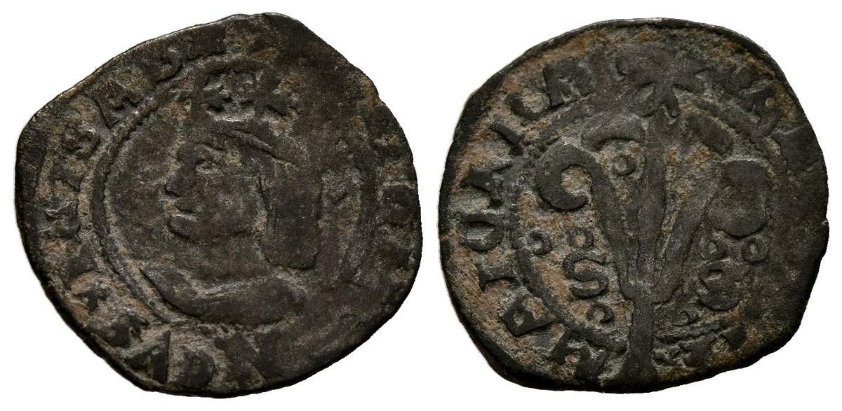 FERNANDO EL CATÓLICO (1479-1516). Diner (Ve. 0,73g/15mm). S/D. Valencia. (Cal-2019-19). S-S en reverso. MBC.
