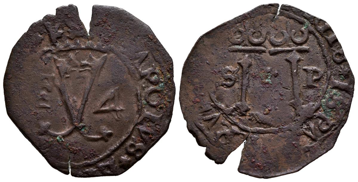 JUANA y CARLOS (1504-1555). 4 Maravedís. (Ae. 2,81g/27mm). S/D. Santo Domingo. (Cal-2019-33). MBC+.