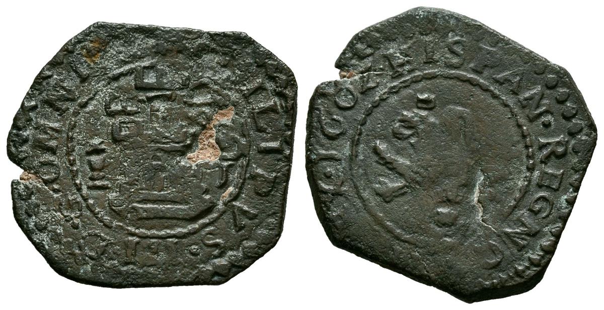 FELIPE III (1598-1621). 2 Maravedís (Ve. 2,43g21mm). 1602. Cuenca J. (Cal-2019-154). BC+. Restos de oxidación. Escasa.