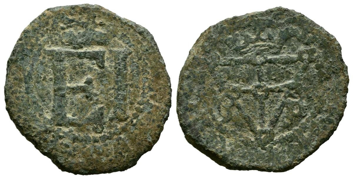 FELIPE IV (1621-1665). 4 Cornados. (Ae. 3,58g/22mm). Pamplona P-P. (Cal-2019-72). MBC. Pátina verde. Escaso ejemplar.