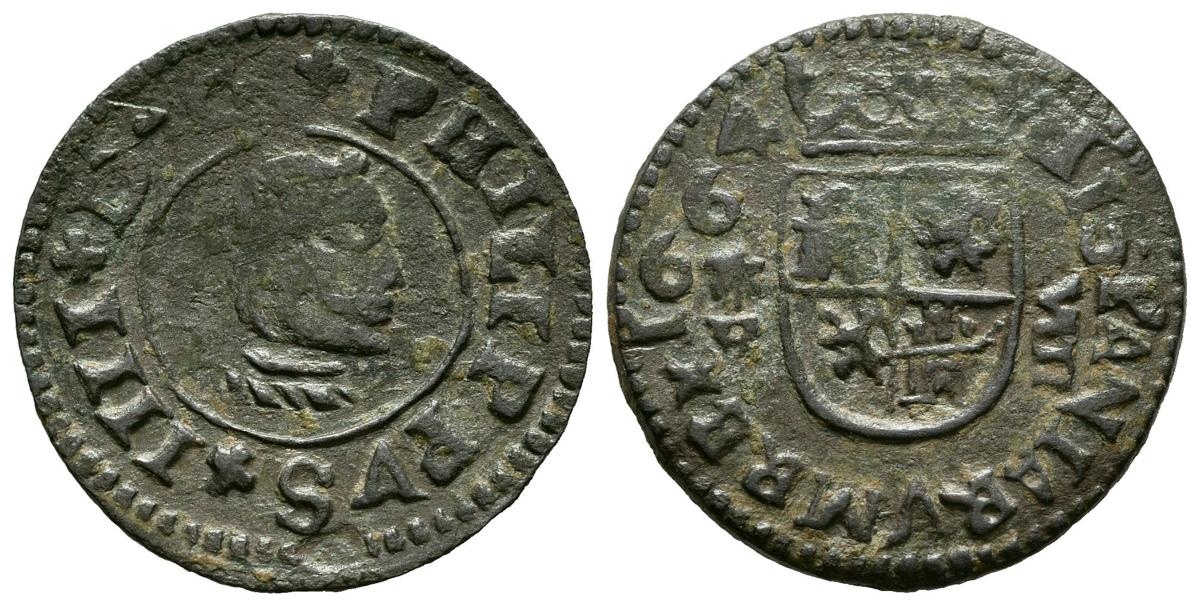 FELIPE IV (1621-1665). 8 Maravedís. (Ae. 2,50g/21mm). 1664. La Coruña R. (Cal-2019-320). Venera a izquierda. MBC.