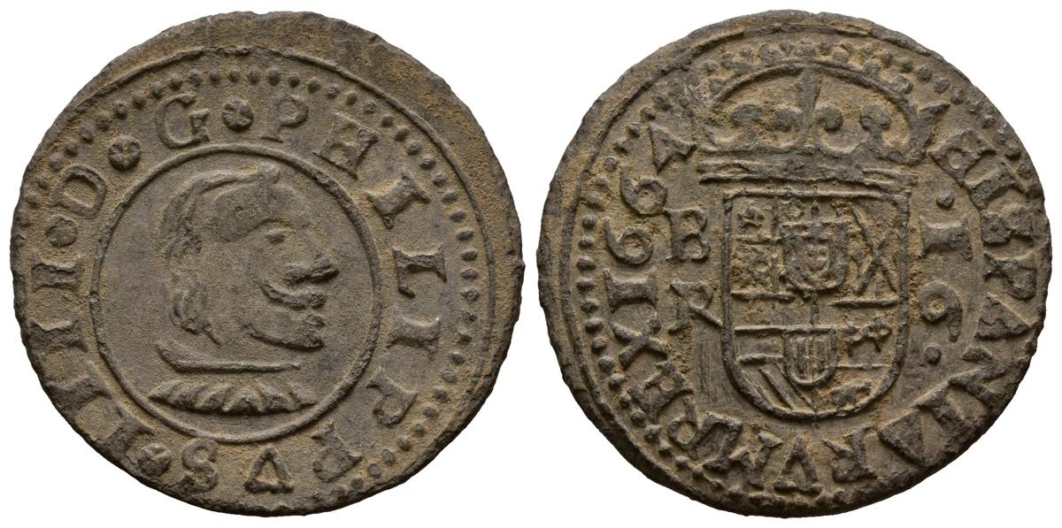 FELIPE IV (1621-1665). 16 Maravedís. (Ae. 3,53g/25mm). 1664. Burgos R. (Cal-2019-441). MBC+.