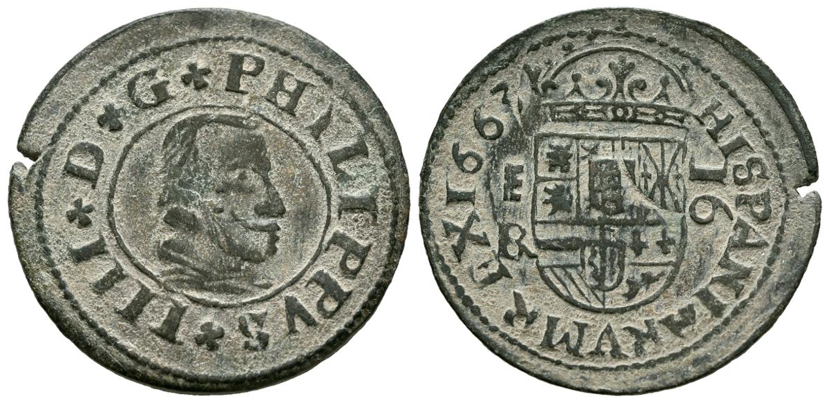 FELIPE IV (1621-1665). 16 Maravedís. (Ae. 4,58g/26mm). 1663. Segovia B. (Cal-2019-489). MBC.