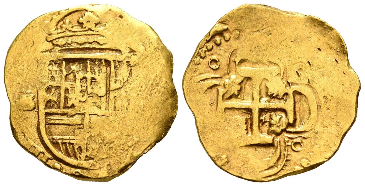 FELIPE IV (1621-1665). 2 Escudos. (Au. 6,72g/23mm). Sevilla. Ensayador y fecha no visibles. (Cal-2019-Tipo 388). Ordinal del rey visibles. MBC. Vanos de acuñación.