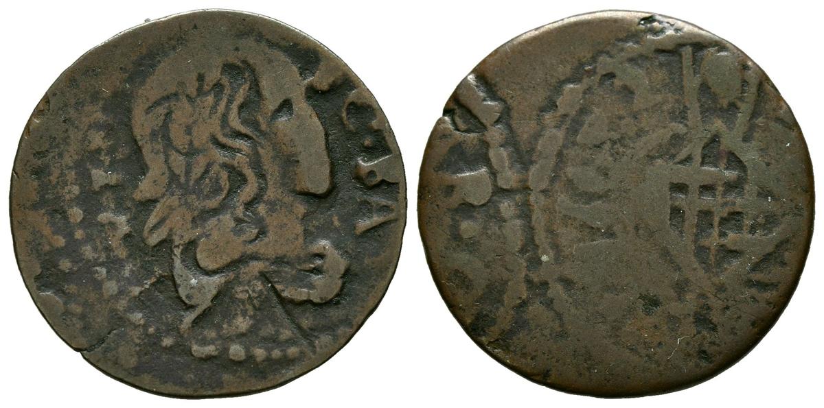 GUERRA DELS SEGADORS (1640-1652). 1 Sisé. (Ae. 2,78g/22mm). 1642. Barcelona. (Cal-2019-43). A nombre de Luis XIII. BC. Descentrada.